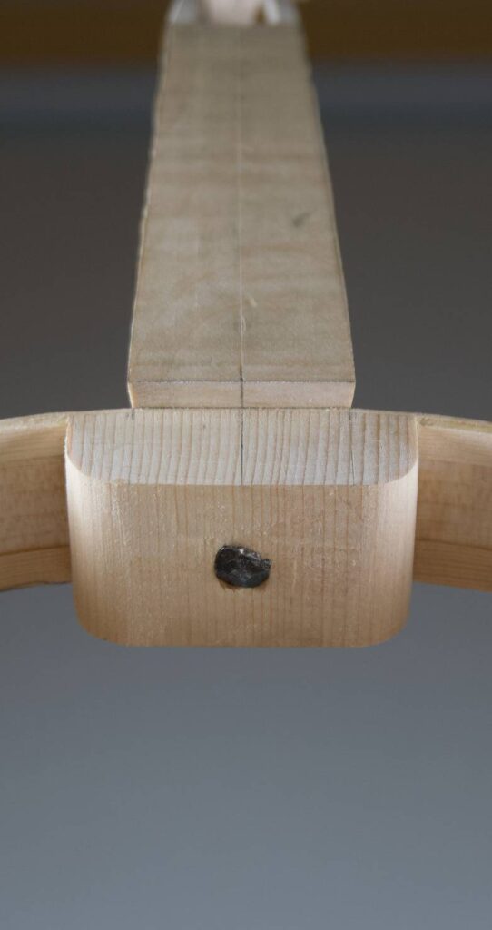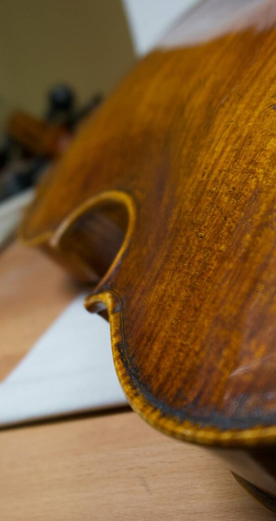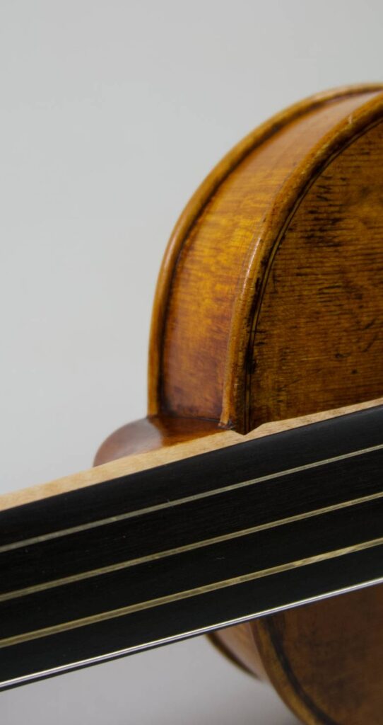Als Vorlage diente eines der nur zwei bekannten Stainer-Instrumente, die noch in ihrer Originalform erhalten sind. Die Fichtendecke stammt aus heimischen Beständen des Toten Gebirges in der Steiermark, Österreich. Boden und Zargen wurden aus demselben Holzstück gefertigt, wobei auch die Holzauswahl für den Hals harmonisch auf den Korpus abgestimmt wurde. Die Verbindung von Hals und Korpus folgt der traditionellen barocken Bauweise und ist genagelt.