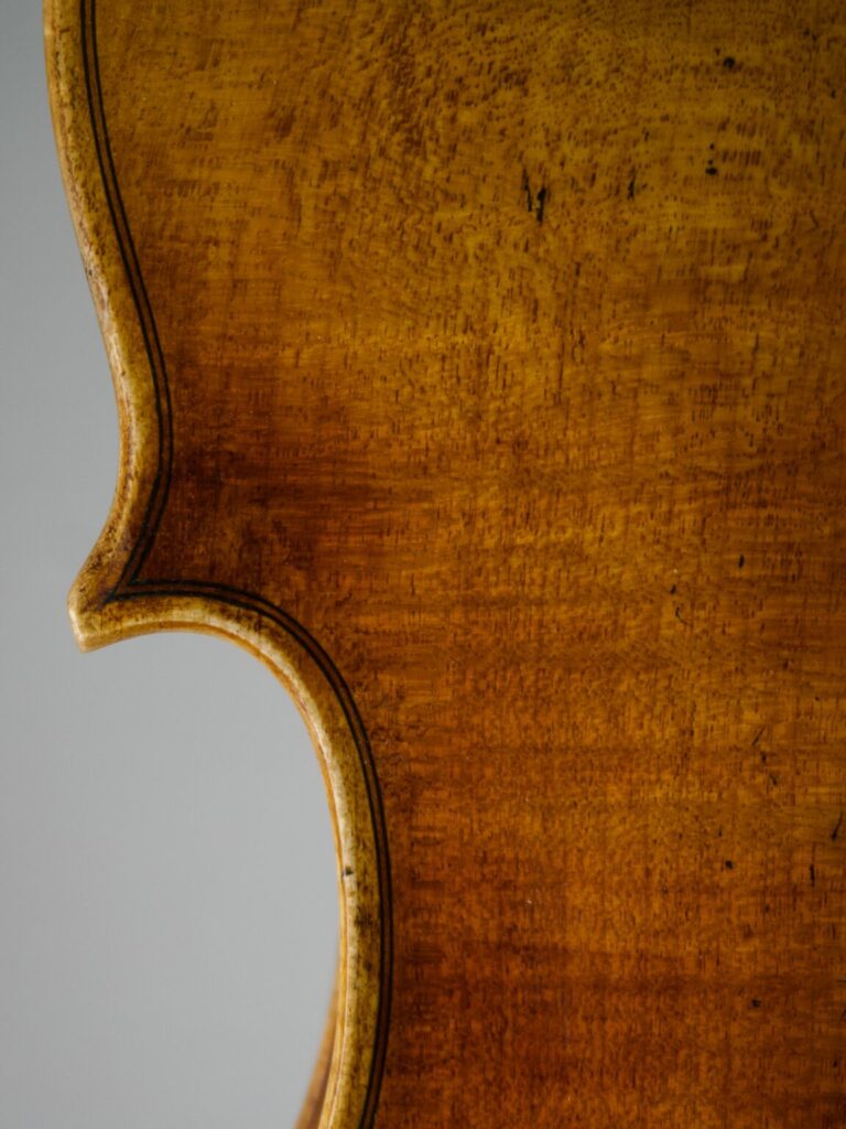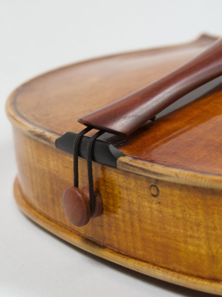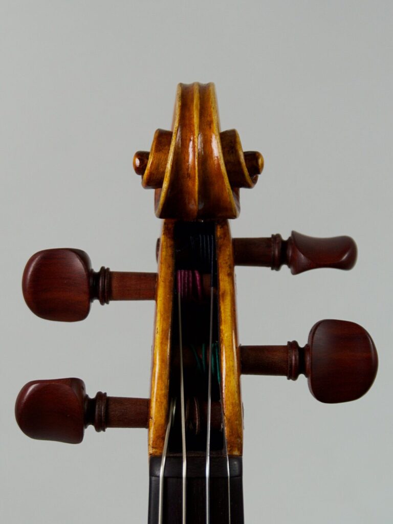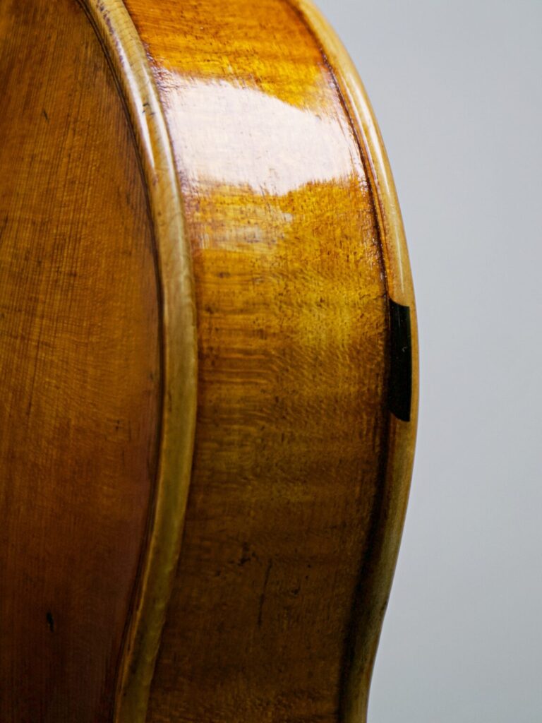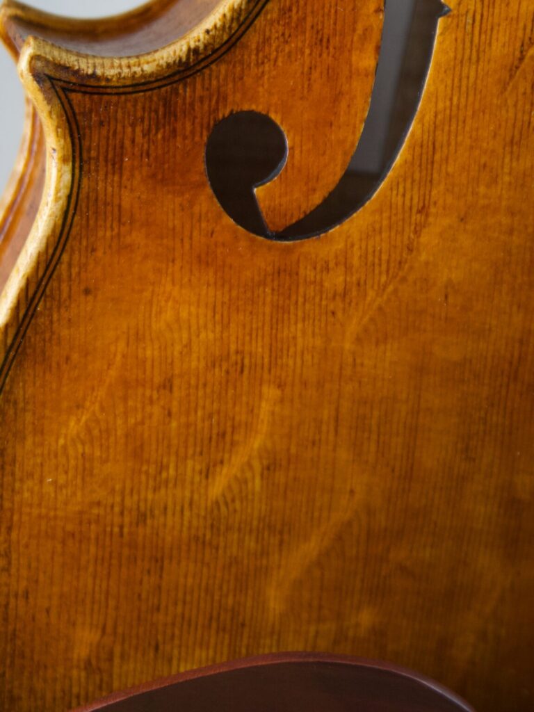 Der Entwurf dieses Modells entstand Anfang 2024 – schon lange war es mein Wunsch, eine eigene Geige zu kreieren, die meine persönliche Handschrift trägt. Nun halte ich das Ergebnis in den Händen: ein Instrument, das nicht nur klanglich das vergangene Jahr widerspiegelt, sondern auch durch besondere Details eine Geschichte erzählt. Eines dieser Details findet sich am Rand des Bodens, wo einst ein Nagel im Baum steckte und im Laufe der Zeit rostete. Anstatt diese Spur zu entfernen, habe ich das Nagelloch mit einer Ebenholzeinlage ausgefüllt und bewusst sichtbar gemacht – als Zeichen der Vergangenheit, die in das Instrument eingewoben bleibt. Diese Geige ist nicht nur ein Ausdruck meiner handwerklichen Entwicklung, sondern auch eine Erinnerung daran, dass wir alle Narben tragen, die uns prägen. Genau wie der Nagel im Holz hinterließ das vergangene Jahr Spuren, die Teil unserer Geschichte sind. Doch anstatt sie zu verstecken, können wir sie mit Stolz zeigen – als Zeugnis dessen, was war und was daraus geworden ist.